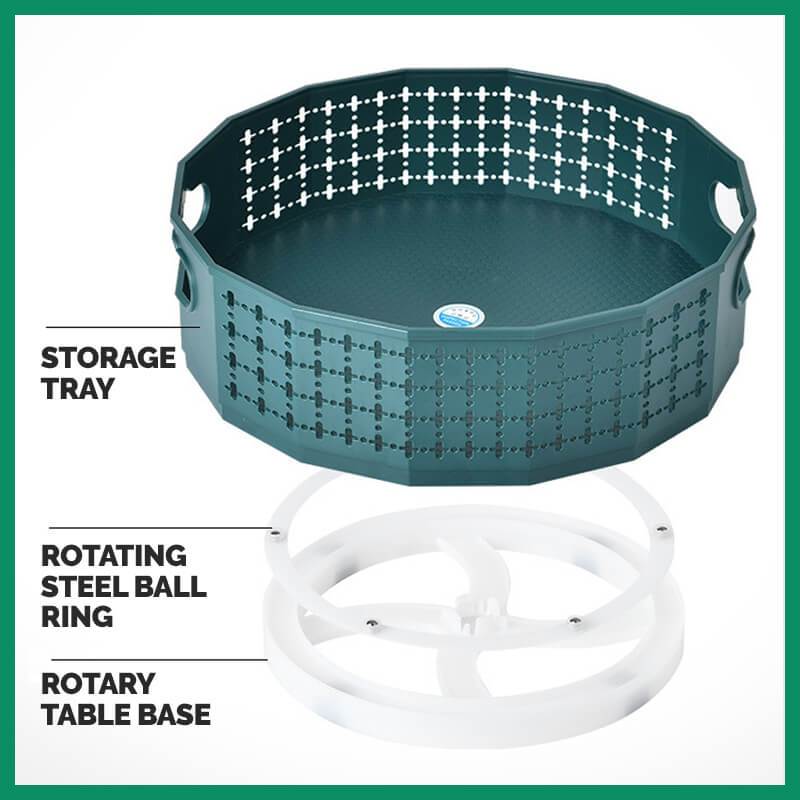 This lazy turntable is made with superior quality, highly durable eco-friendly materials, with heavy-duty reliable handles, non-slip TPR mat and non-skid base, lazy organizer being easy to wash and guaranteed to last for many years!