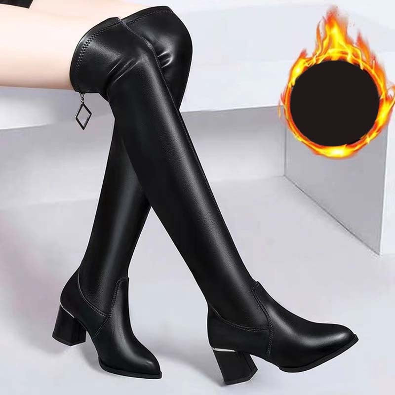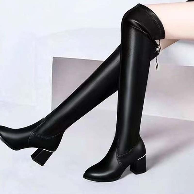 Package Includes: 1 Pair×Black Over-the-Knee Boots with Heel
