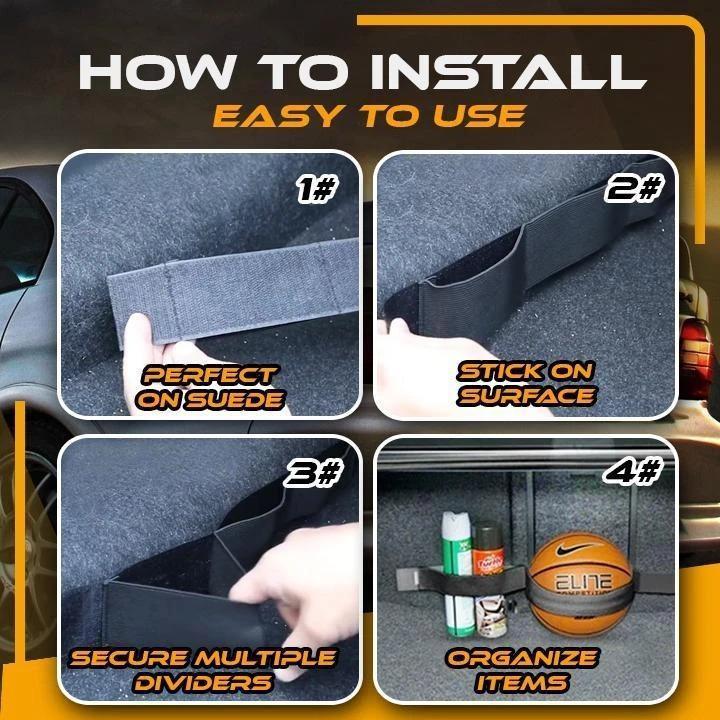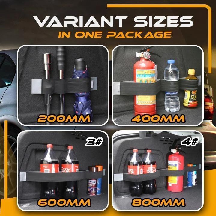 SECURE HOLD: Car Trunk Fixing Belt Storage Tapes with multiple dividers can prevent your car essentials items like fire extinguishers, First Aid Kit, and Utility equipment to be secure, prevents hitting each other that may cause damage to your car.