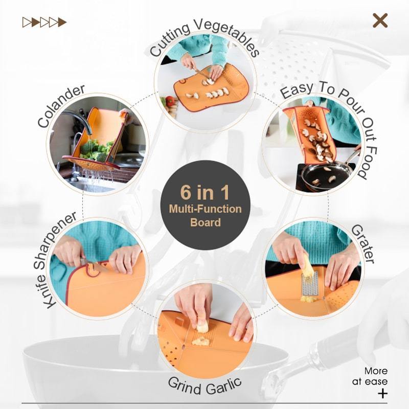 The 6 in 1 collapsible chopping board must be a good helper for your home kitchen work and outdoor activities. It is very convenient and easy to use will exceed your expectations.