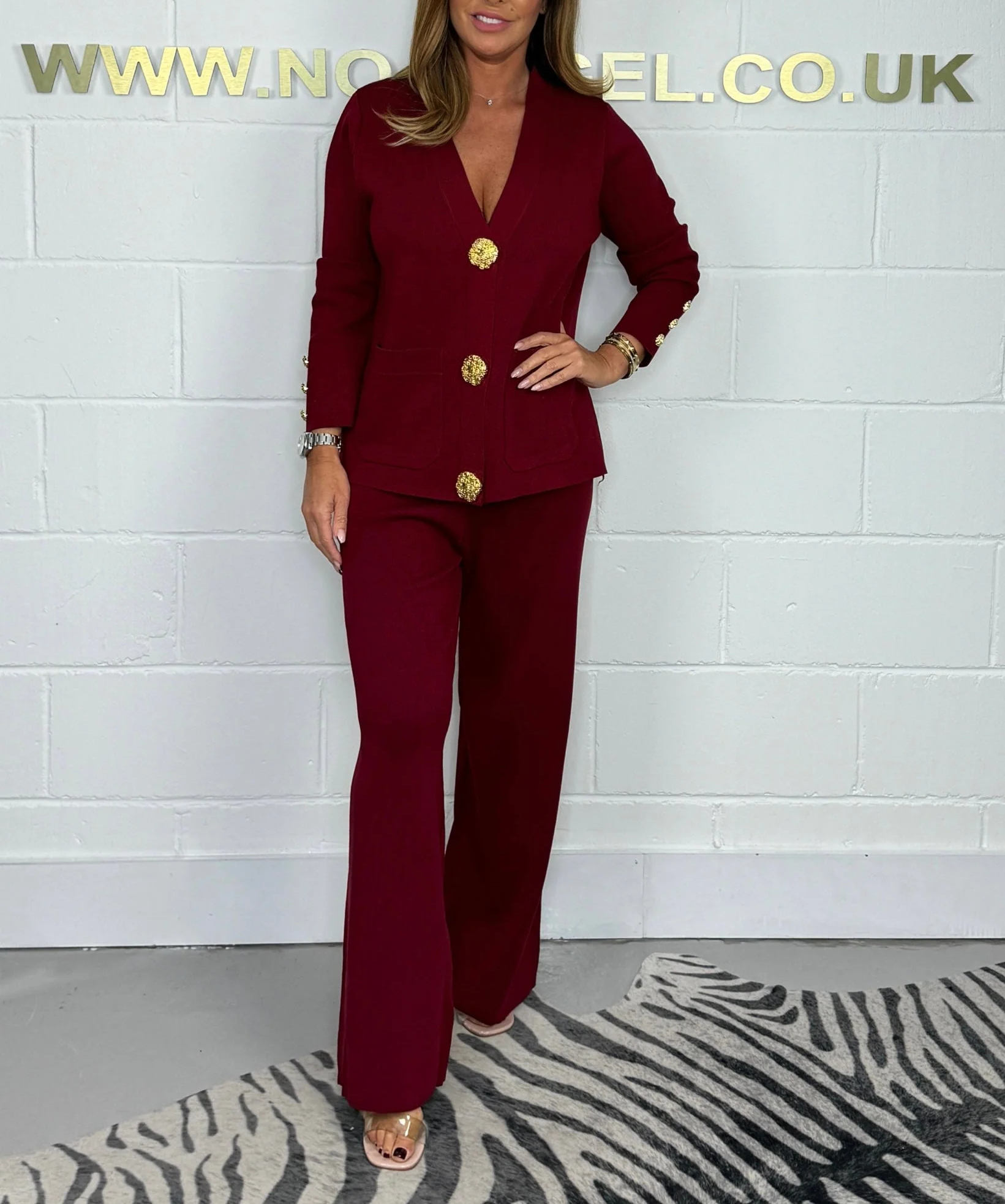 š¤Gold Button Soft Knit Trouser Co-Ord