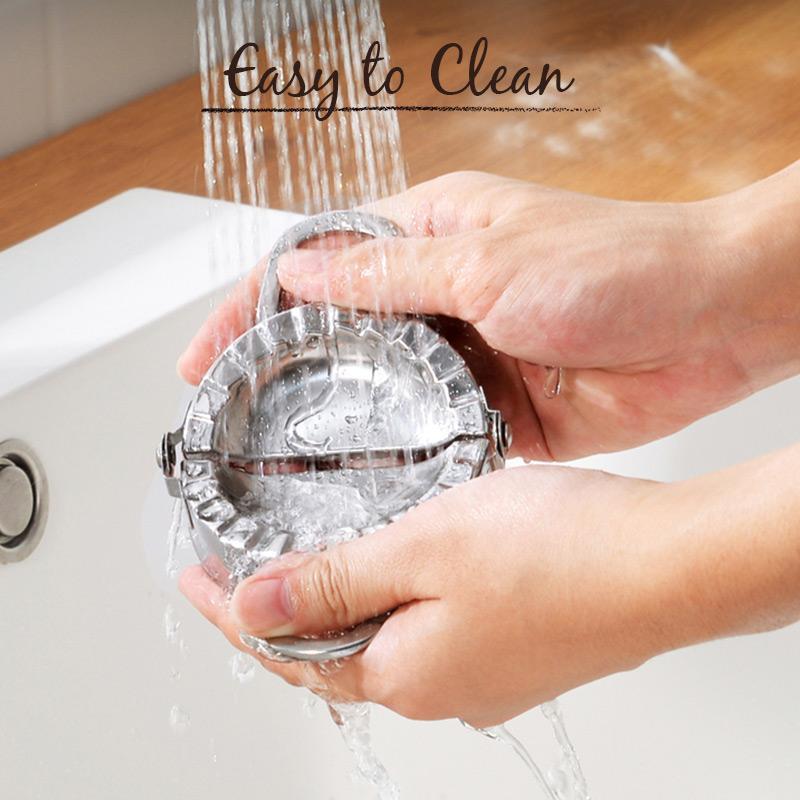 - Mirror polished surface makes it easy to clean, preventing food residue from sticking in between the seams. The smooth hinge allows tidy and efficient dumpling preparation