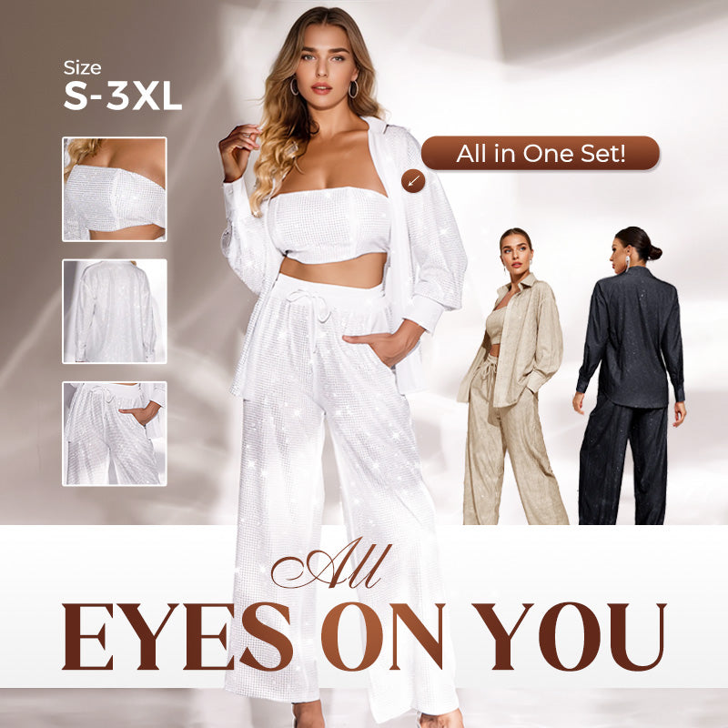 ✨Sequin Blazer And Wide Trousers For Women (3-piece Set)