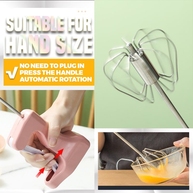 - Get the job done faster than ordinary egg beaters while saving energy. No electricity or batteries required. Simply press the handle and it rotates automatically. Perfect for mixing sauces, marinades, eggs, cake batter, pancake mixes and more!