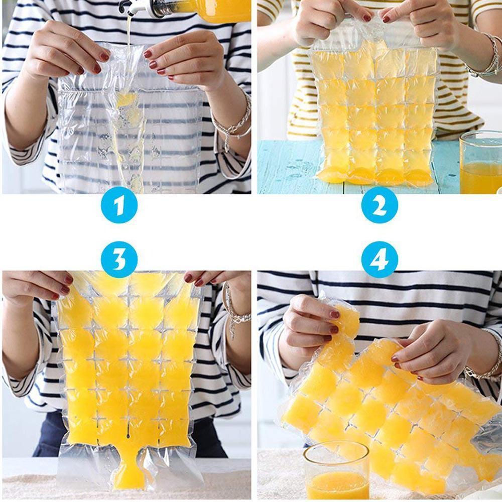 - Self-sealing and disposable ice cube bags, it includes 20pcs, 24 cubes per piece.