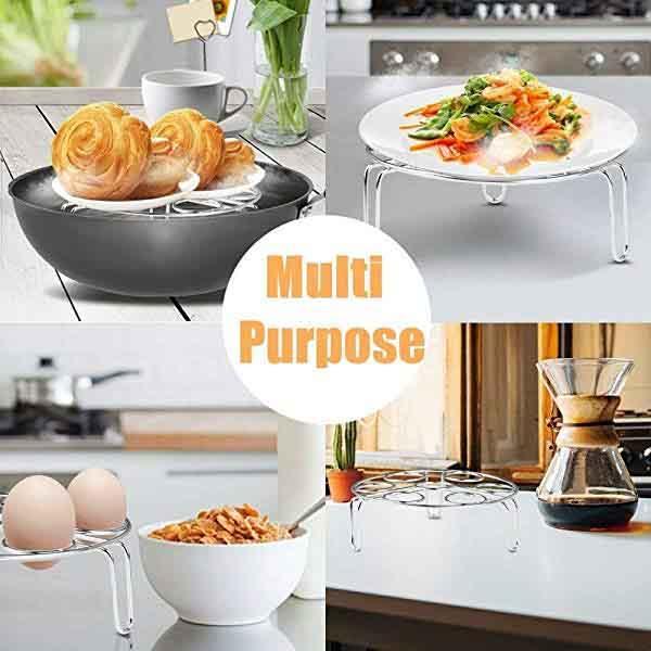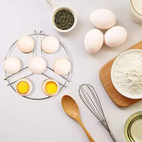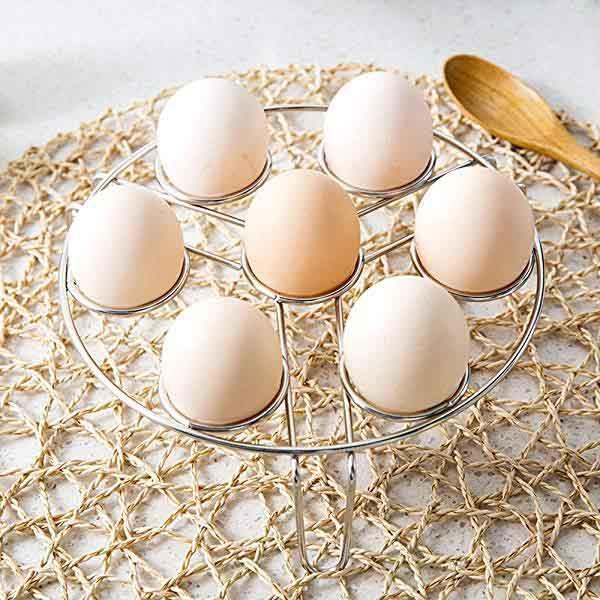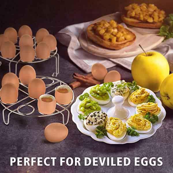 - STACKABLE EGG STEAMER RACKS - You will love the egg rack comes in 2 pieces with different heights so you can use egg racks individually. With the stackable egg stand, you can cook 14 eggs at a time in a few minutes. Not only use for eggs and pot roast, but also can be used as a trivet to steam food with a plate, or a cooling rack, pot stand rack, food holder, trivet for a pressure cooker, etc.