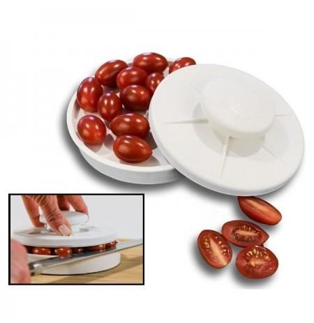 FAST, SAFE and VERSATILE! The Rapid Slicer is designed for slicing a large quantity of small fruits and vegetables such as cherry tomatoes,grapes and olives in half quickly and safely. The unit’s large capacity can hold up to 2 cups of cherry tomatoes, grapes or olives at once.
