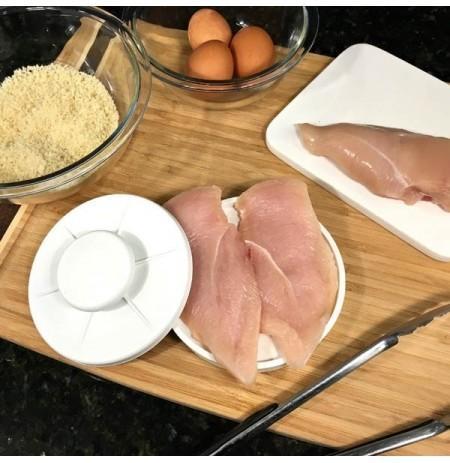 Easily adjusts to the size of items being sliced allowing larger tomatoes, grapes and other small produce. Another great use is slicing meats, such as chicken breasts into thin, even cutlets!
