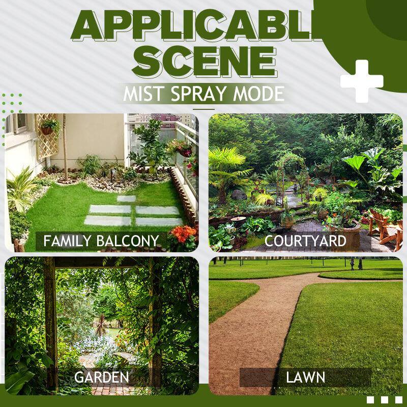The fog-like watering mode, with fine water droplets, is very suitable for watering /cooling your garden, lawn, grass and flower beds.