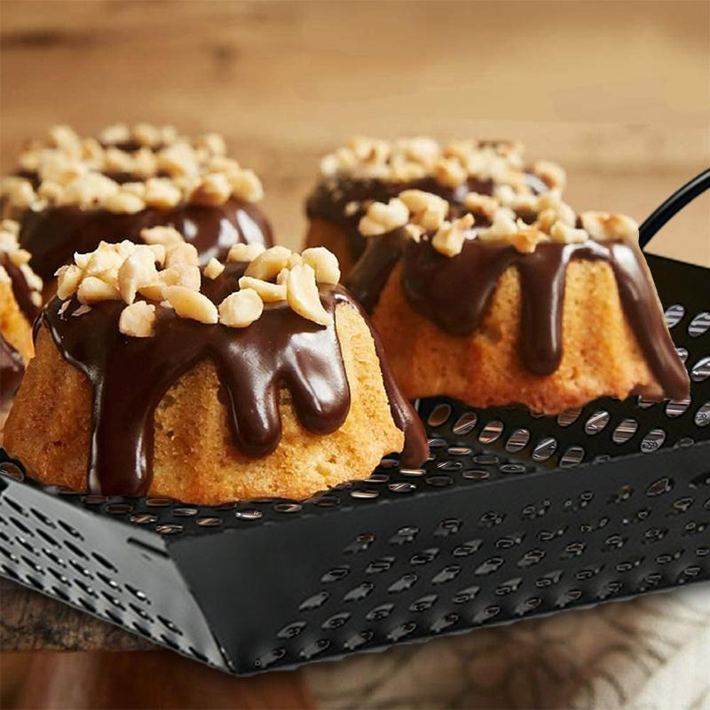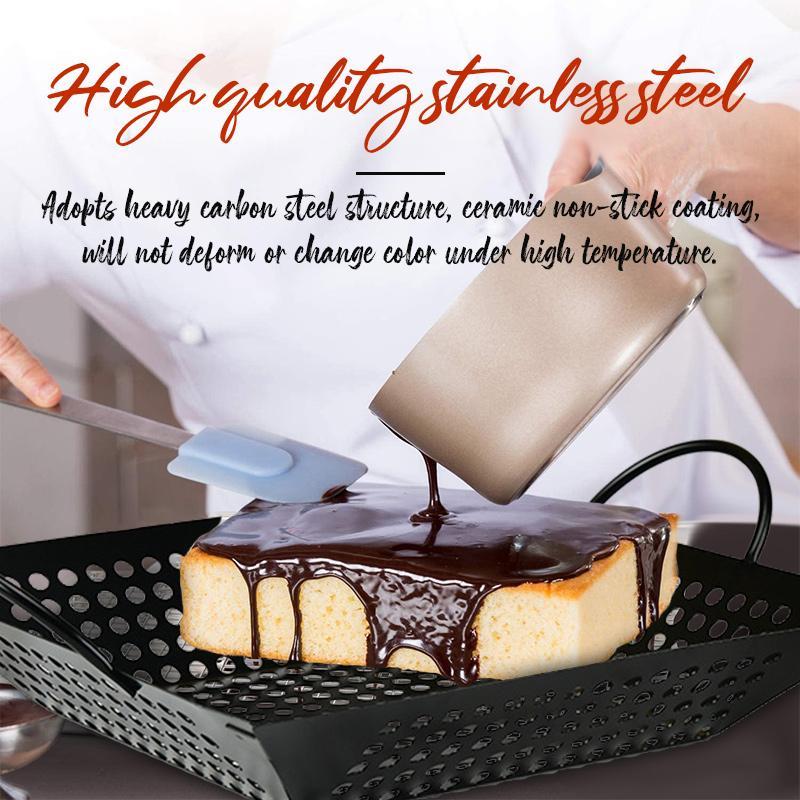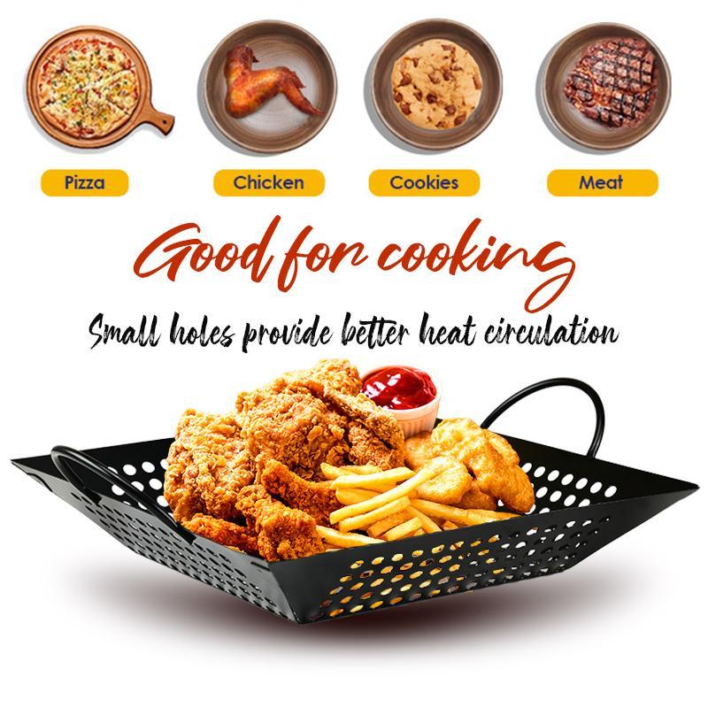 Perforated grill surface, small holes provide better heat circulation, and get a delicious smoky grill taste in your food. The hole size is appropriate, and the holes are perforated from the inside to the outside to ensure that the food will not get stuck on the sharp edges and get out of the grill. Drop in the rack.