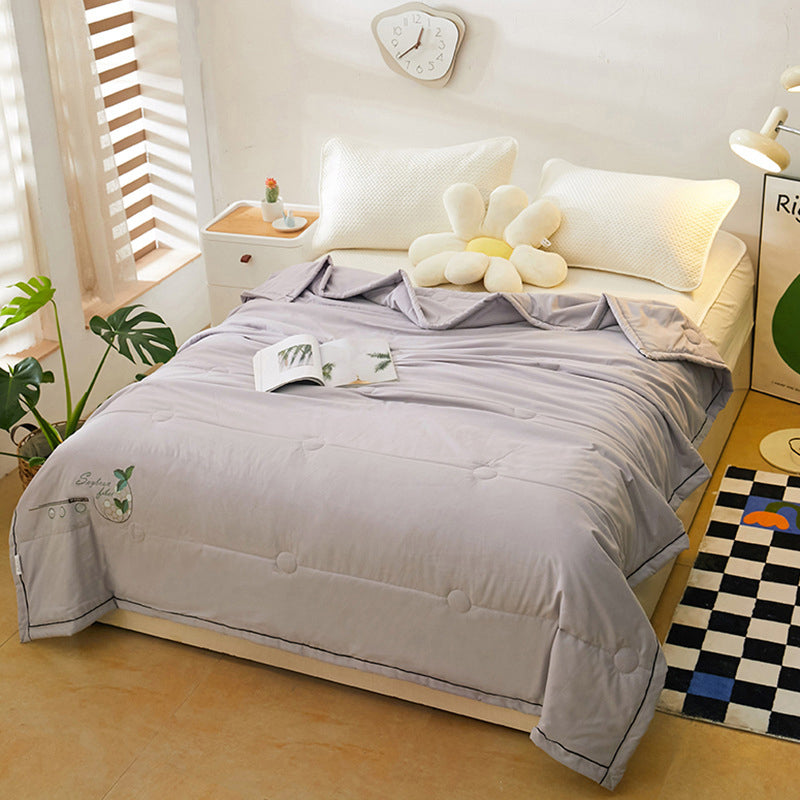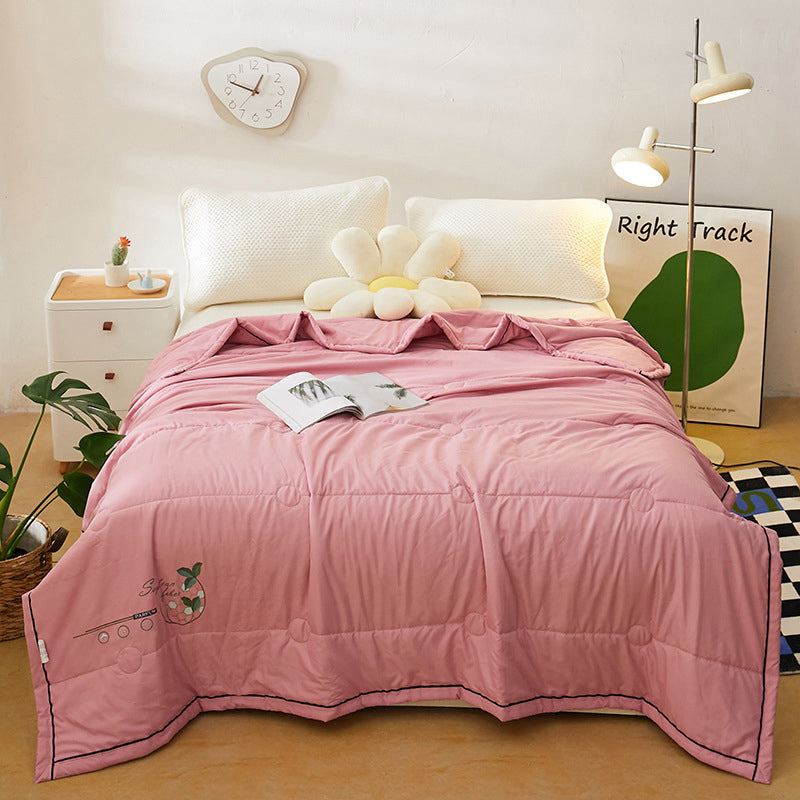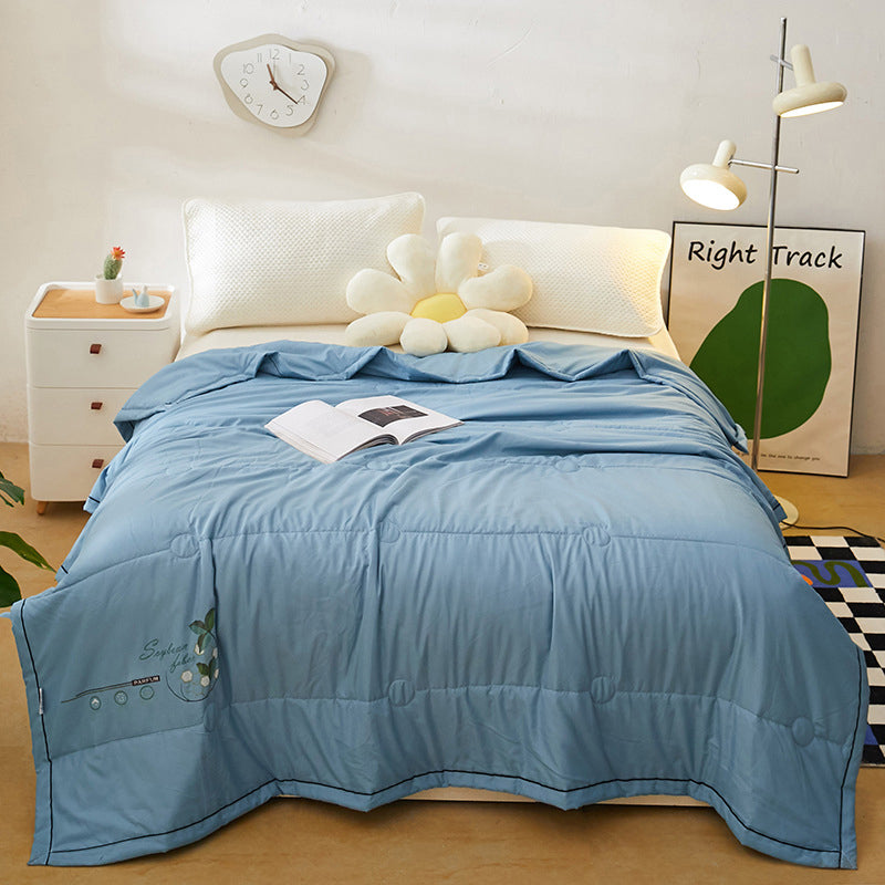 Menthol is added to this quilt, which is a new type of additive obtained by high-tech extraction technology, which is very fresh and natural. The extract and silk are woven into a fabric, which has the characteristics of cool and refreshing, mosquito repellent, sweat-absorbent, dry and breathable. It is cool but not cold. It helps to regulate body temperature and keep you cool and dry.Anyway, The quilt is perfect for hot summer nights and is easy to care for.