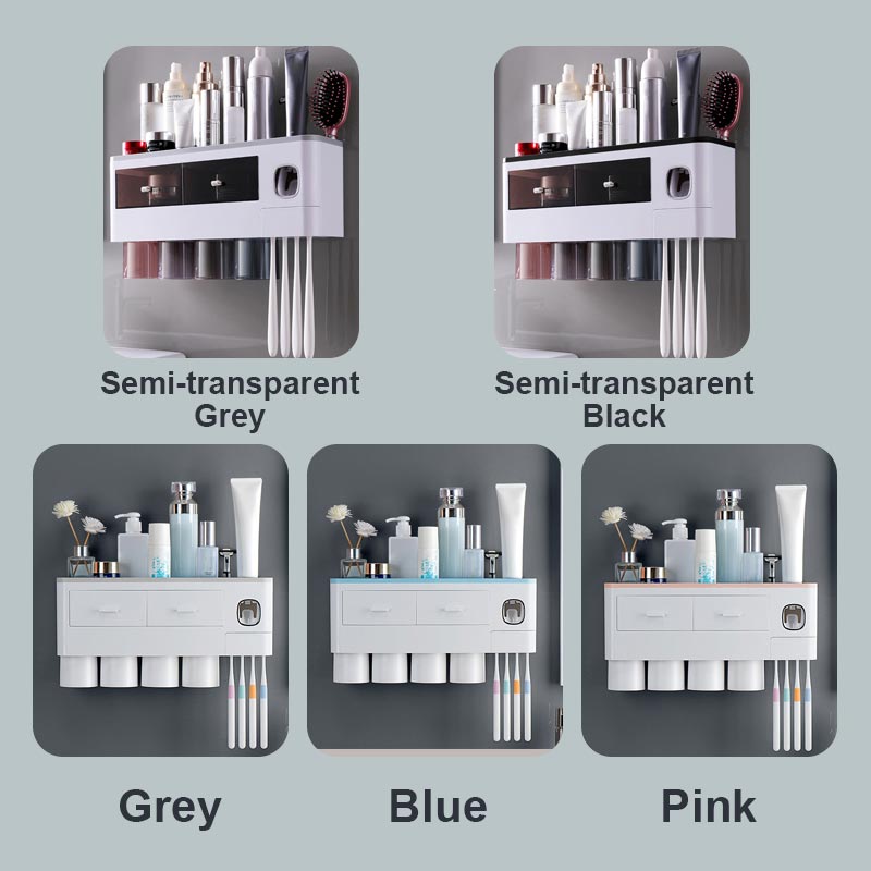 There are holes at the bottom of the toothbrush holder to drain water stains and keep it ventilated and dry. Both the toothbrush holder and the toothpaste dispenser can be disassembled, convenient for direct flushing with water.