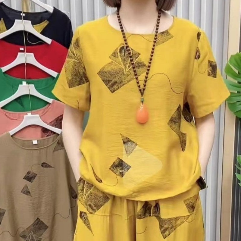 Get ready for the perfect combination of style and comfort with our Women’s Printed Short-Sleeved Top & Cropped Pants Set!🌸🌸