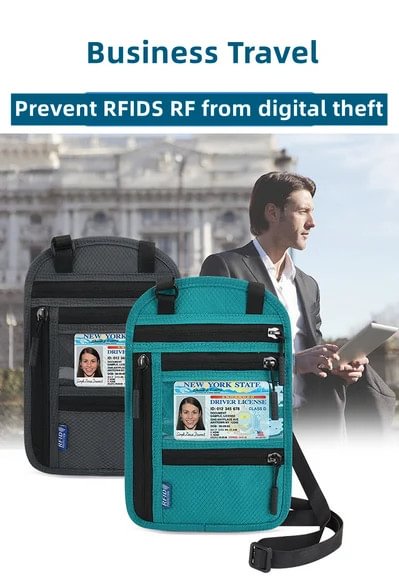 Travel Neck Pouch Neck Wallet with RFID Blocking Passport Holder