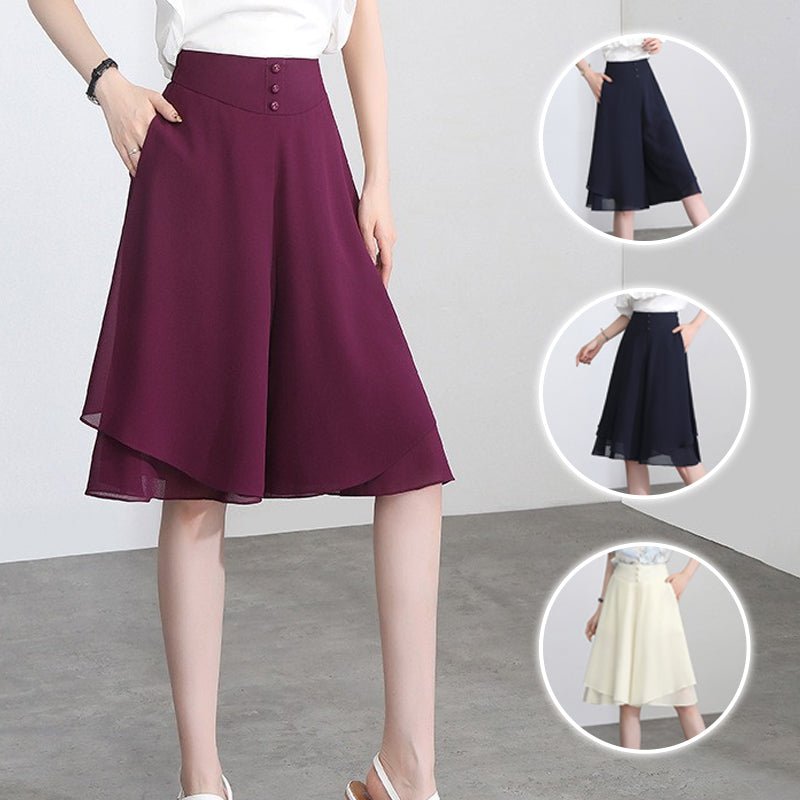 Step into sophistication and effortless style with our elegant wide-leg chiffon culottes. These culottes are designed to make a statement with their flowing silhouette and luxurious chiffon fabric.