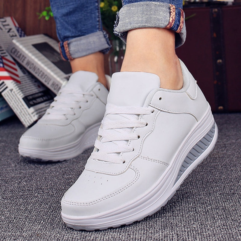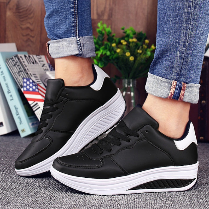 Women's Comfortable Cushioned Microfiber Leather Thick Sole Sneakers