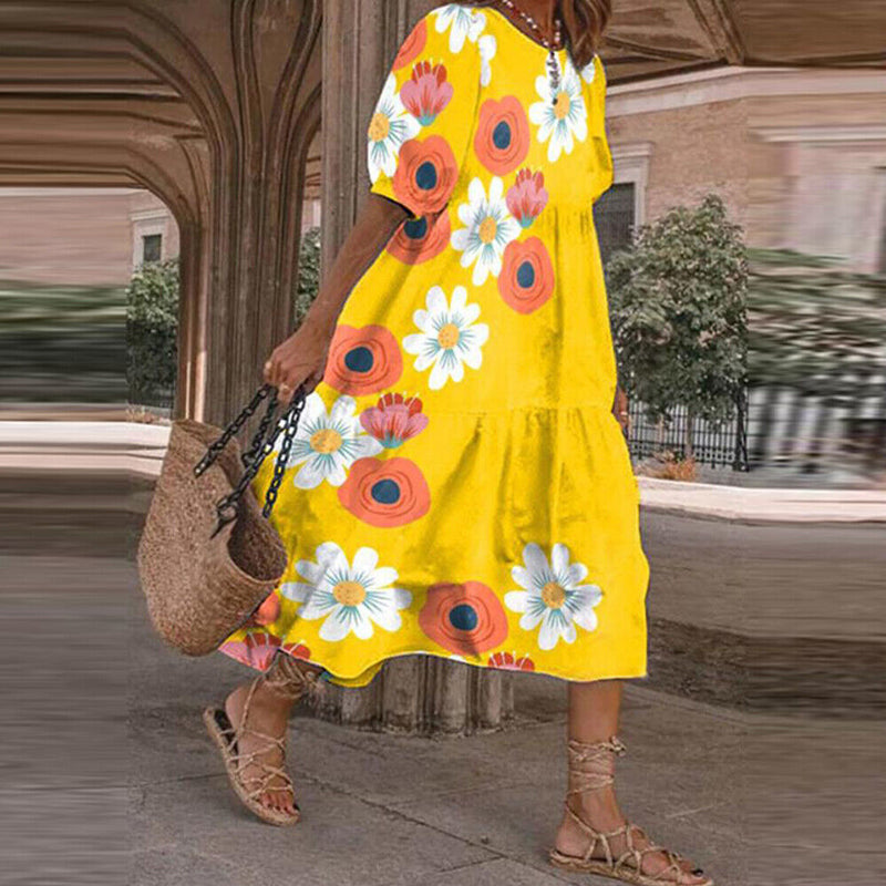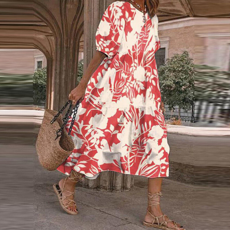 Versatility: The Women's Spring and Summer Casual Loose Round Neck Floral Dress can be worn for a variety of occasions. The dress is perfect for casual days out, family gatherings, or even work events. The dress can be dressed up or down with the right accessories and shoes, making it a versatile and stylish option for any wardrobe.