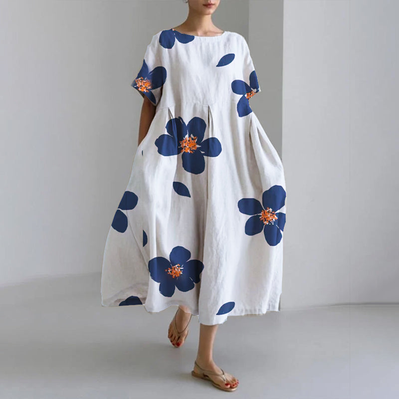 Women's Spring and Summer Casual Loose Round Neck Floral Dress