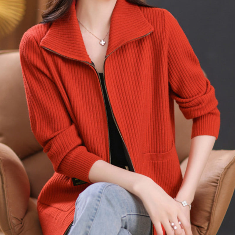 Women's Knitted Zip Up Cardigan Sweater